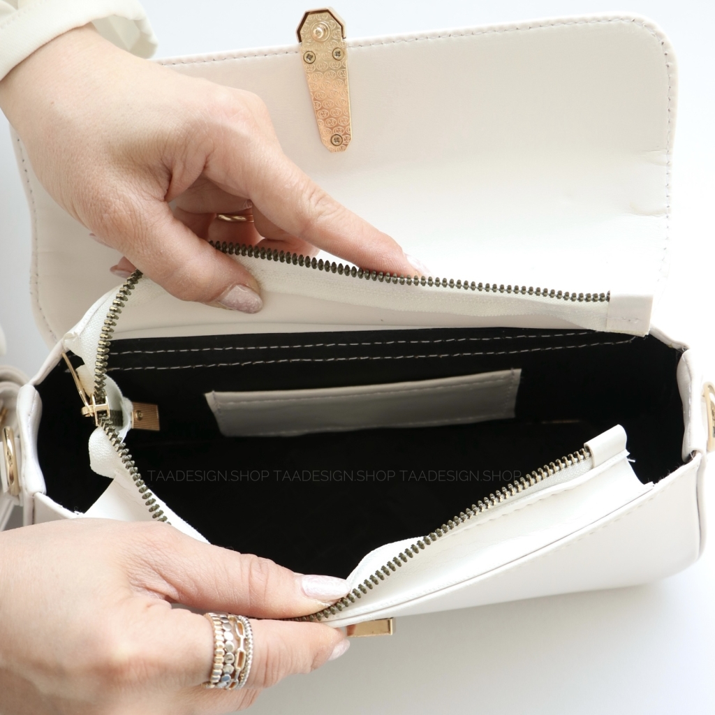 - داخل کیف: دارای یک فضای کلی بهمراه زیپ و داخل کیف دارای یک جیب بهمراه زیپ
