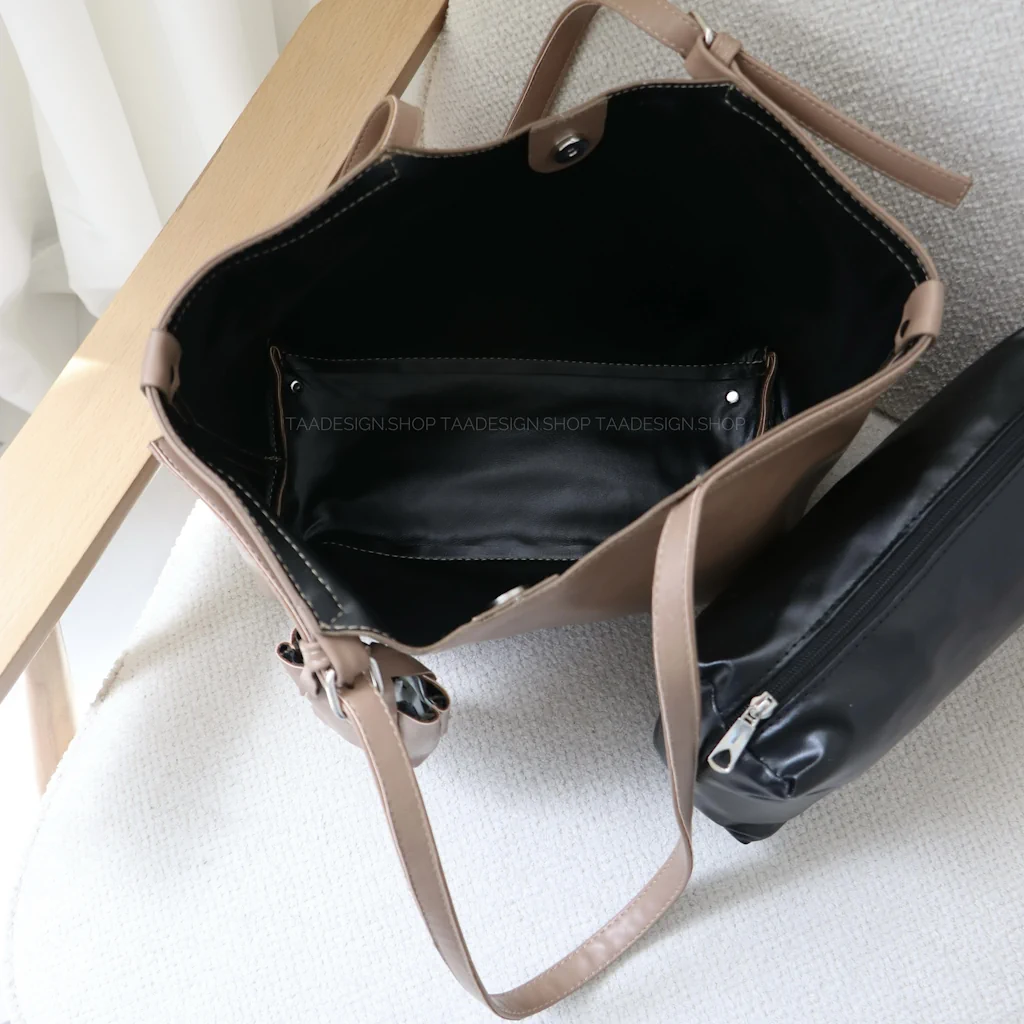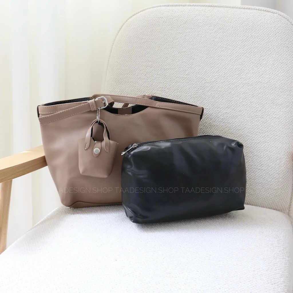 - فضای داخل و بیرون کیف: دارای یک فضای کلی به همراه قفل آهنربایی و داخل کیف دارای یک کیف آرایشی میباشد و آویز کیف پول خردی