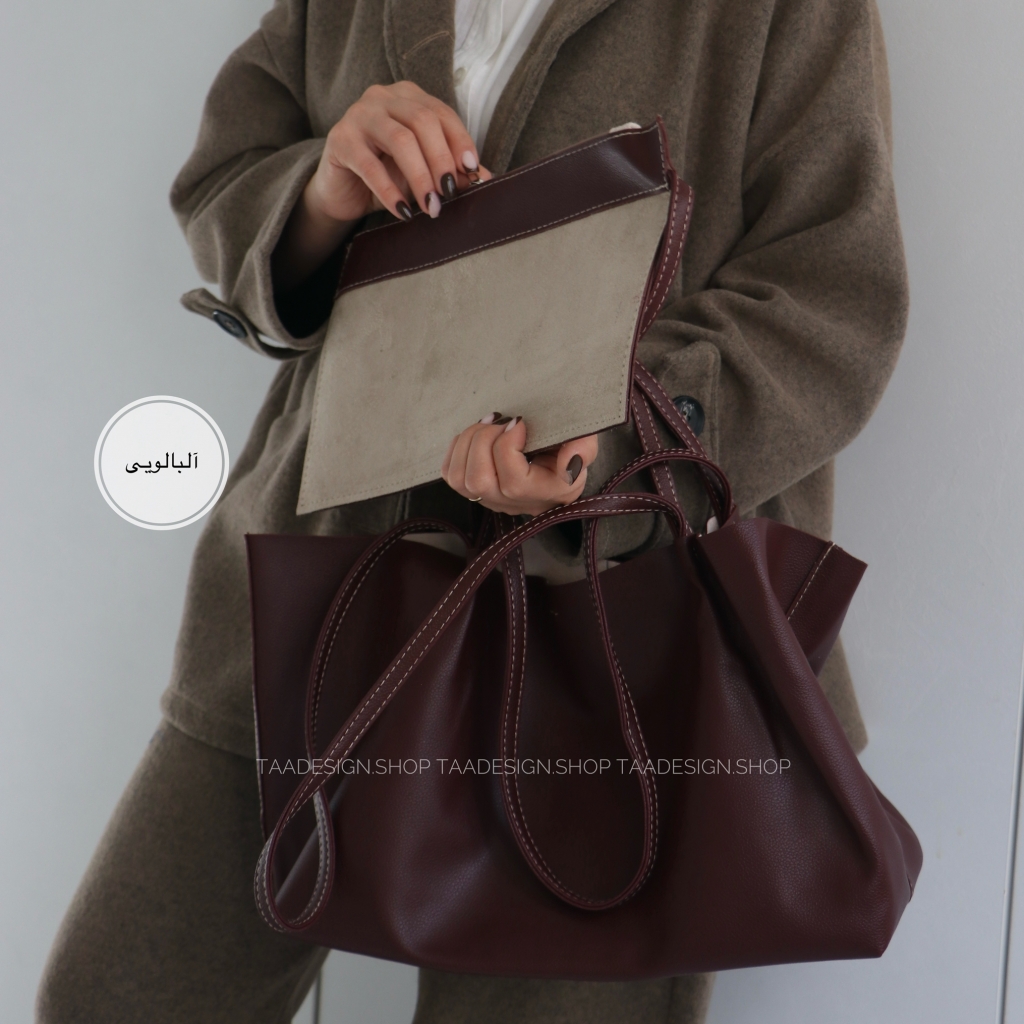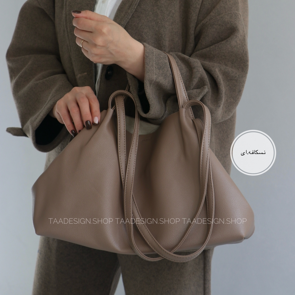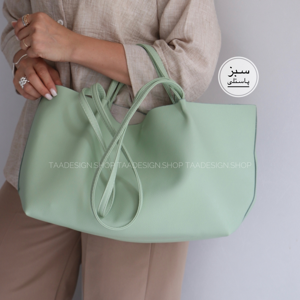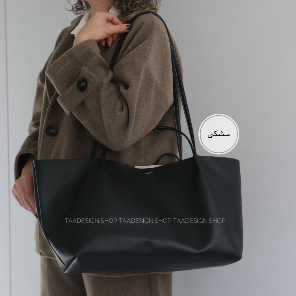 دارای بند دوشی و دستی ثابت و دارای یک فضای کلی که با قفل قلاب بسته میشود داخل کیف دارای یک کیف به همراه زیپ میباشد